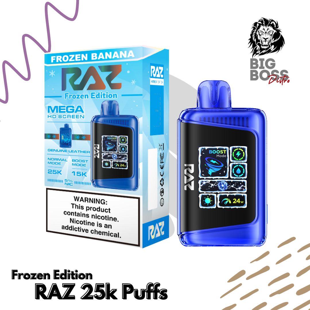 This edition features a unique Frozen Technology, offering a refreshing, icy sensation with every inhale. Vapers looking for a cool, smooth experience will love the RAZ 25000 Frozen Edition.