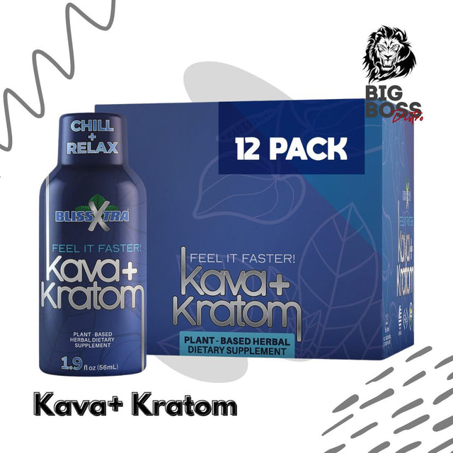 BlissXtra Kava + Kratom Extract Shot is a premium botanical blend that combines Kava Kava Root Extract (265mg) and Mitragyna Speciosa Leaf Extract (35mg). This fast-acting liquid formula is designed to promote relaxation, mental clarity, and a balanced mood.